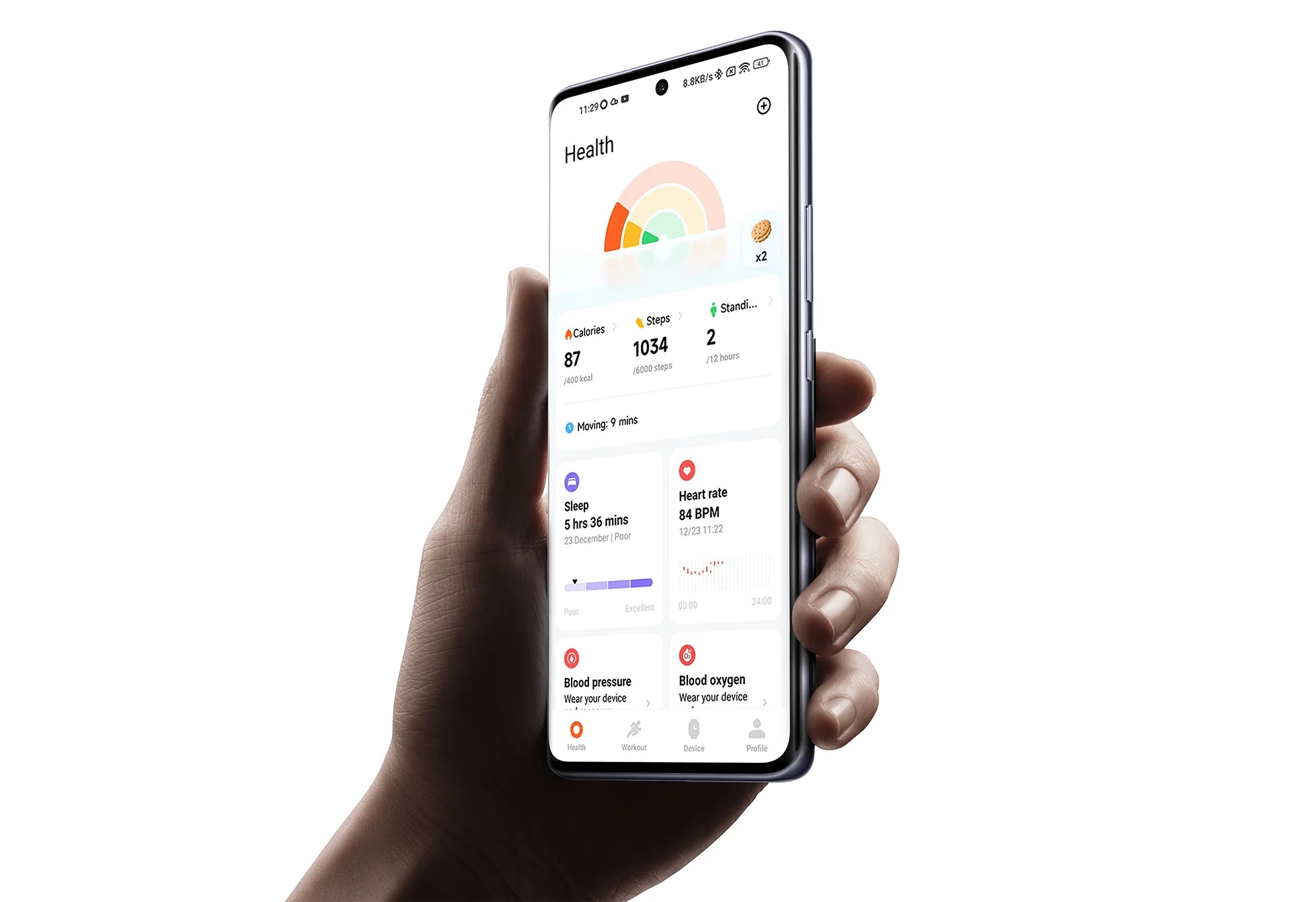 Измерения | продолжительность и качество сна, количество шагов, потраченные калории, пройденное расстояние, пульс, уровень стресса и восстановление, уровень кислорода в крови |